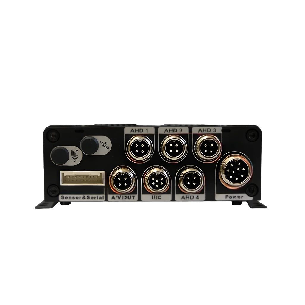 Компактный 4-канальный автомобильный видеорегистратор с поддержкой AHD 720p и двумя слотами для SD-карт по 256 Гб. Подходит для транспорта и спецтехники.